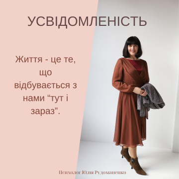Усвідомленість – це вміння перебувати в теперішньому моменті, і безоціночно проживати його, без зайвих думок про минуле або майбутнє....